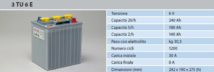 08 BATTERIA NBA TUBOLARE CORAZZATA C20 240Ah 6V 1200 Cicli