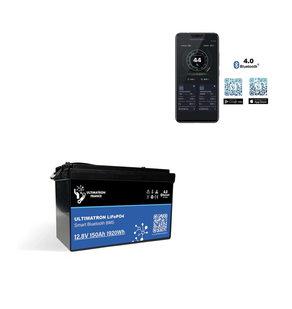 Batteria al litio Ultimatron 12.8V 150Ah 1920Wh LiFePO4 Smart BMS con Bluetooth integrato per fotovoltaico top di gamma made in Europa
