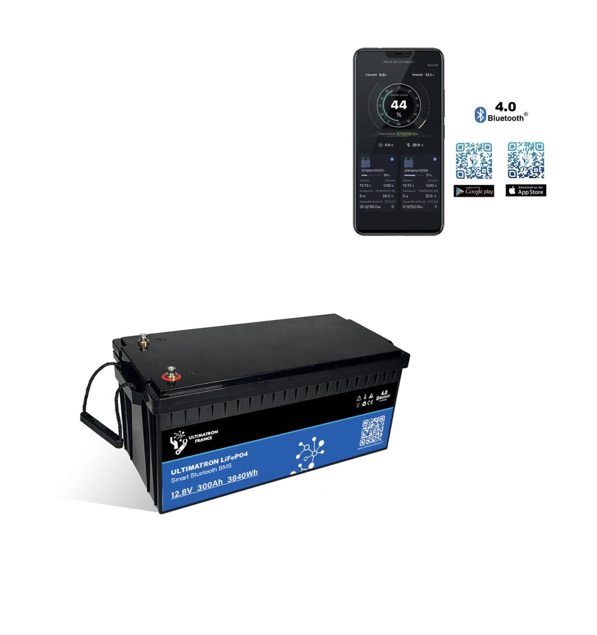 Batteria al litio Ultimatron 12.8V 300Ah 3840Wh LiFePO4 Smart BMS con Bluetooth integrato per fotovoltaico top di gamma made in Europa