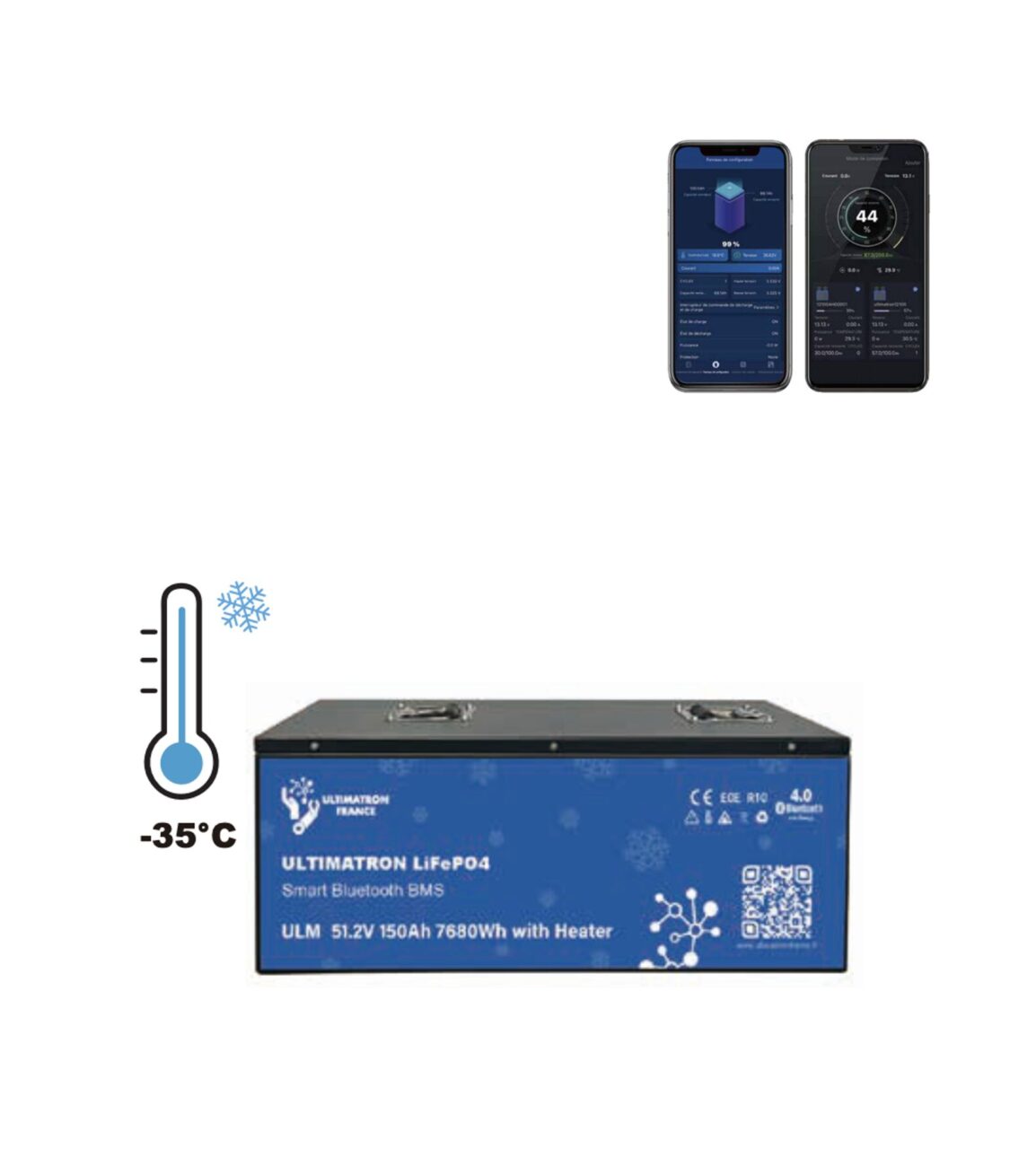 Batteria al litio Ultimatron X USO fotovoltaico 52.2V 150Ah LiFePO4 Smart BMS con Bluetooth e resistenza fino a -35°