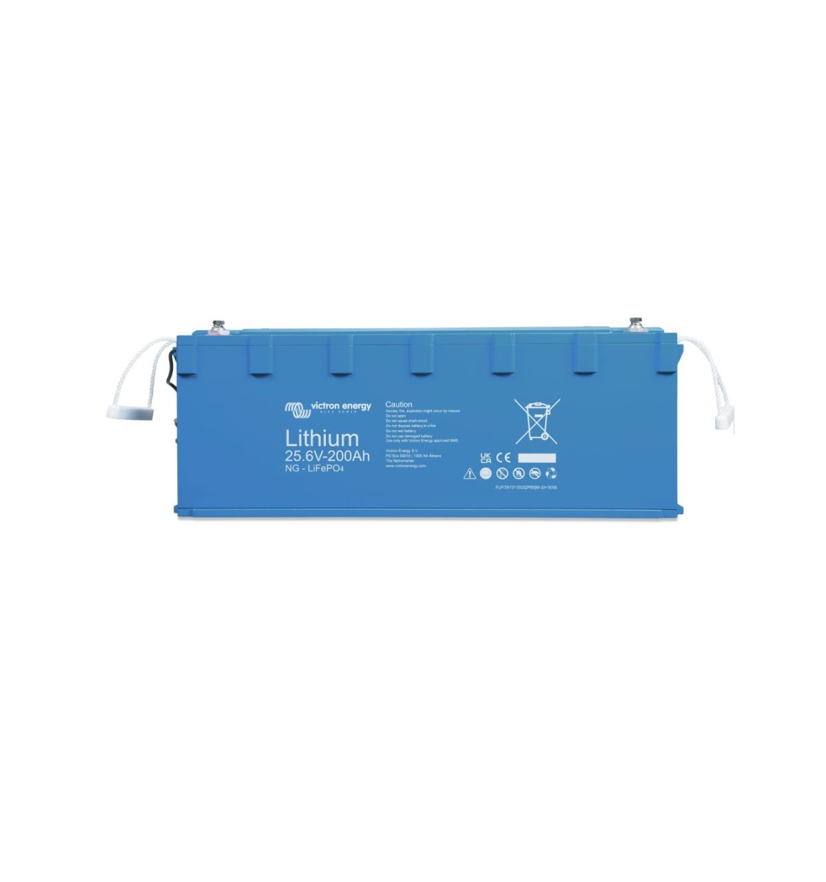 Le batterie Lithium NG di Victron Energy sono batterie al litio e ferro fosfato (LiFePO4 o LFP) disponibili con una tensione nominale di 12,8 V, 25,6 V e 51,2 V in varie capacità. Possono essere collegate in serie, in parallelo e in serie/parallelo, pertanto, è possibile costruire un banco batterie per tensioni di sistema da 12 V, 24 V o 48 V. Il numero massimo di batterie di un sistema è 50, che si traduce in un accumulo massimo di energia di 192 kWh in un sistema da 12 V e fino a 384 kWh nei sistemi da 24 V e 48 V.