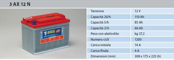 Batteria Piastra Corazzata Tubolare NBA 3AX12N C20 110A 12V X Fotovoltaico 1200cicli