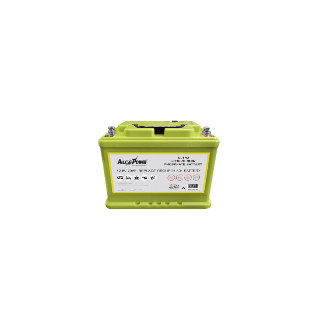 Batteria Solare Lithio litio lifep04 Alcapower 70Ah 12V Con BMS Ferro Fosfato 12.8V per fotovoltaico