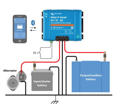 Da utilizzare in sistemi di batterie doppie per veicoli o in barche in cui l’alternatore e la batteria di avviamento sono utilizzati per caricare la batteria di servizio. L’unità può essere monitorata e programmata tramite Bluetooth e può essere controllata tramite interruttore on/ off remoto.