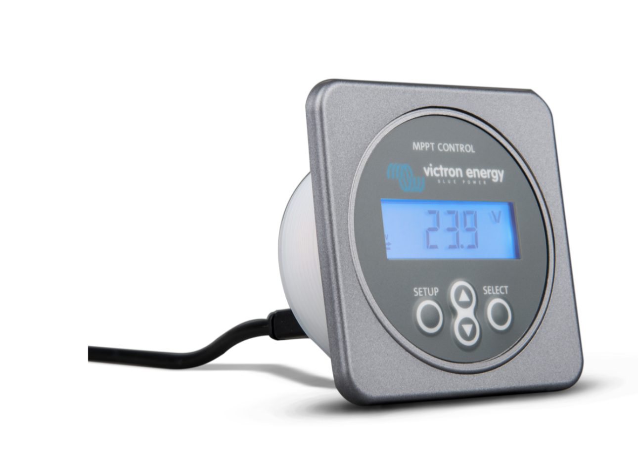 Il controllo MPPT consente di visualizzare lo stato e di configurare tutti i regolatori di carica BlueSolar MPPT dotati di porta di comunicazione VE.Direct. Il controllo MPPT è montato nel familiare alloggiamento della serie BMV-700 , mantenendo un aspetto coerente e professionale per i pannelli e le apparecchiature di monitoraggio dei sistemi.