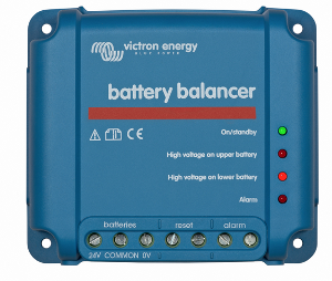 Il Battery Balancer equalizza lo stato di carica di due batterie 12V collegate in serie, o di diverse stringhe parallele di batterie collegate in serie. Quando la tensione di carica di un sistema di batterie a 24V sale ad oltre 27,3V, il Battery Balancer viene attivato per confrontare la tensione delle due batterie collegate in serie. Il Battery Balancer assorbirà fino a 0,7A di corrente dalla batteria (o dalla stringa di batterie in parallelo) con la tensione più elevata. Il risultante differenziale di corrente di carica assicura così che tutte le batterie convergano nel tempo verso uno stato di carica identico. Se necessario, è possibile mettere in parallelo diversi equalizzatori. Un banco batterie da 48V può essere equalizzato con tre Battery Balancer.