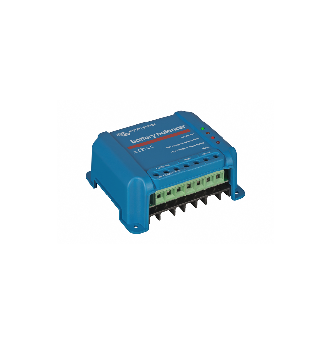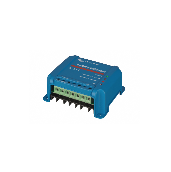 Il Battery Balancer equalizza lo stato di carica di due batterie 12V collegate in serie, o di diverse stringhe parallele di batterie collegate in serie. Quando la tensione di carica di un sistema di batterie a 24V sale ad oltre 27,3V, il Battery Balancer viene attivato per confrontare la tensione delle due batterie collegate in serie. Il Battery Balancer assorbirà fino a 0,7A di corrente dalla batteria (o dalla stringa di batterie in parallelo) con la tensione più elevata. Il risultante differenziale di corrente di carica assicura così che tutte le batterie convergano nel tempo verso uno stato di carica identico. Se necessario, è possibile mettere in parallelo diversi equalizzatori. Un banco batterie da 48V può essere equalizzato con tre Battery Balancer.