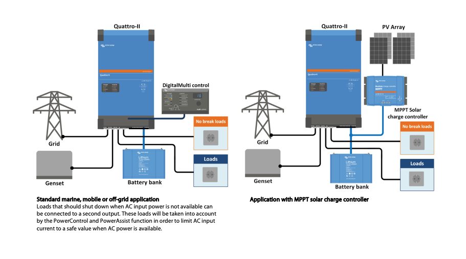 Inverter 24V 5000VA con Caricabatterie 120A Quattro II 24/5000/120-50/50 Victron Energy QUA242505010