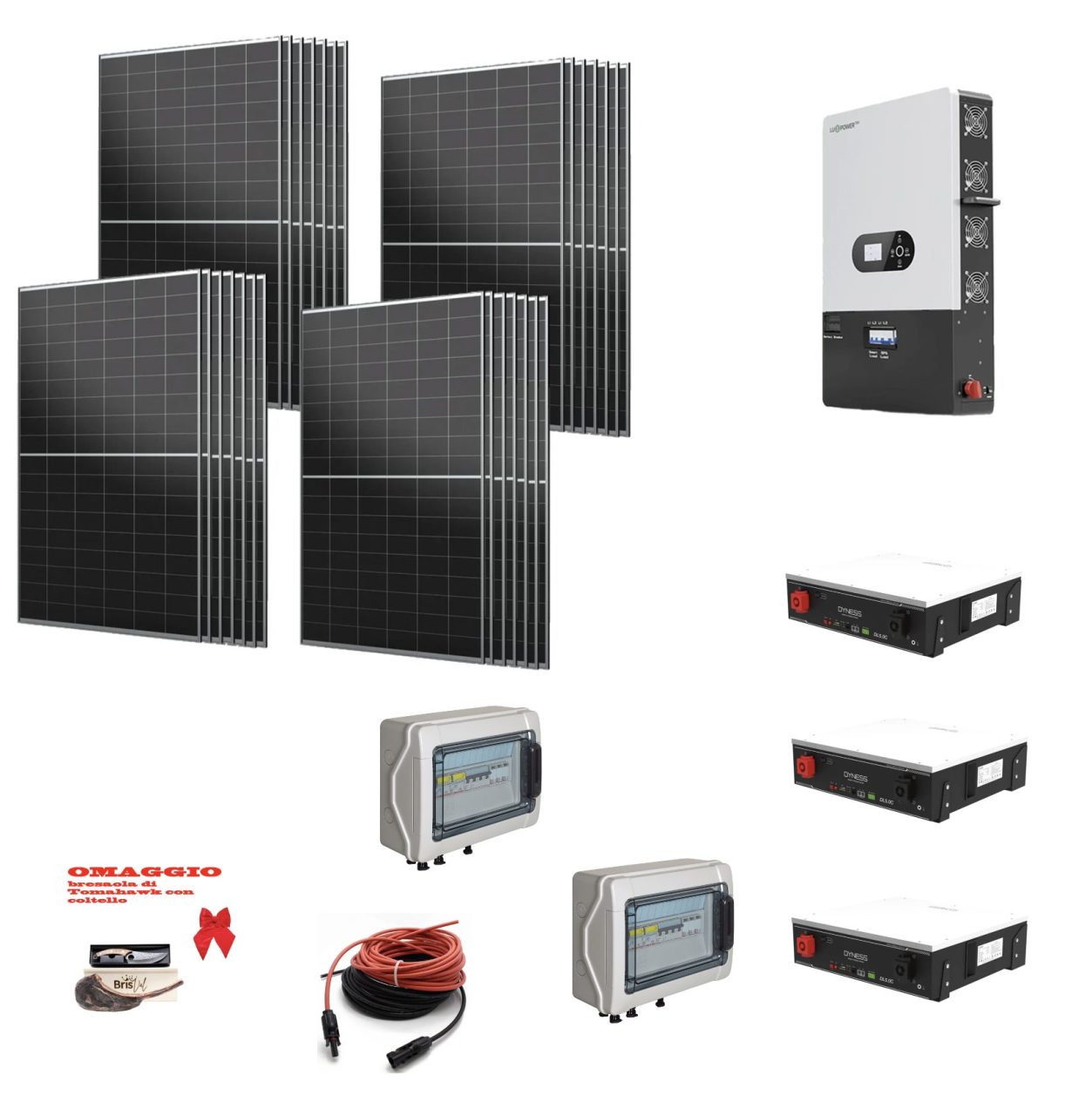 Kit OFF GRID AUTOCONSUMO 16,7Kwp Pannello Solare AIKO 465Wp Monocristallino Inverter 12Kwh con regolatore 2 ingressi MPPT (4 stringhe)