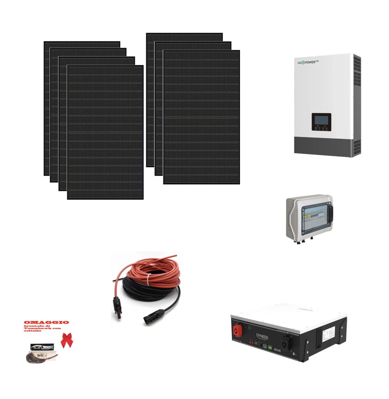 Kit OFF GRID AUTOCONSUMO 3,2Kwp Pannello Solare HYUNDAI 450Wp Monocristallino bifacciale Inverter 6Kwh con regolatore 2 ingressi MPPT (2 stringhe)