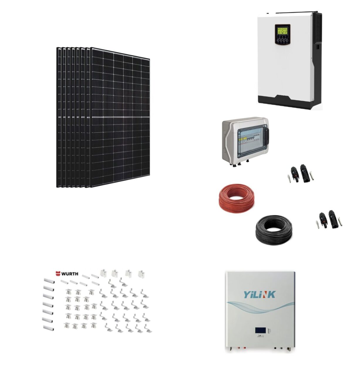 Kit Solare 4,1KWp Off Grid Pannello Solare FUTURA SUN 410W Fotovoltaico Monocristallino Inverter Monofase 5KWh + batteria litio 7,2kwh + staffe Wùrth