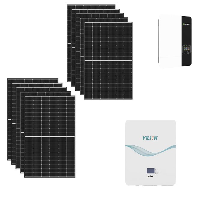 Kit 4Kwp Pannello Solare Phono solar 460Wp Monocristallino Inverter Growatt 5Kwh con regolatore + Batteria litio 7,2Kwh
