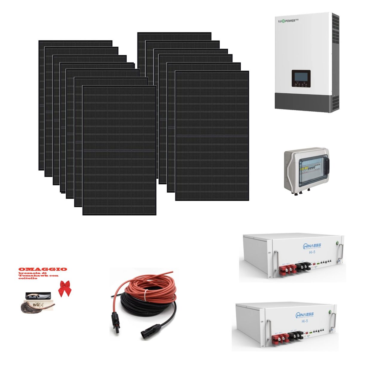 Kit 8,1Kwp MONOFASE Autoconsumo Pannello Solare HYUNDAI 450WP HiT-H450CE-BF Monocristallino bifacciale Inverter 6Kwh con regolatore 2 MPPT luxpower SNA6000 + Batteria Hinaess litio 10Kwh