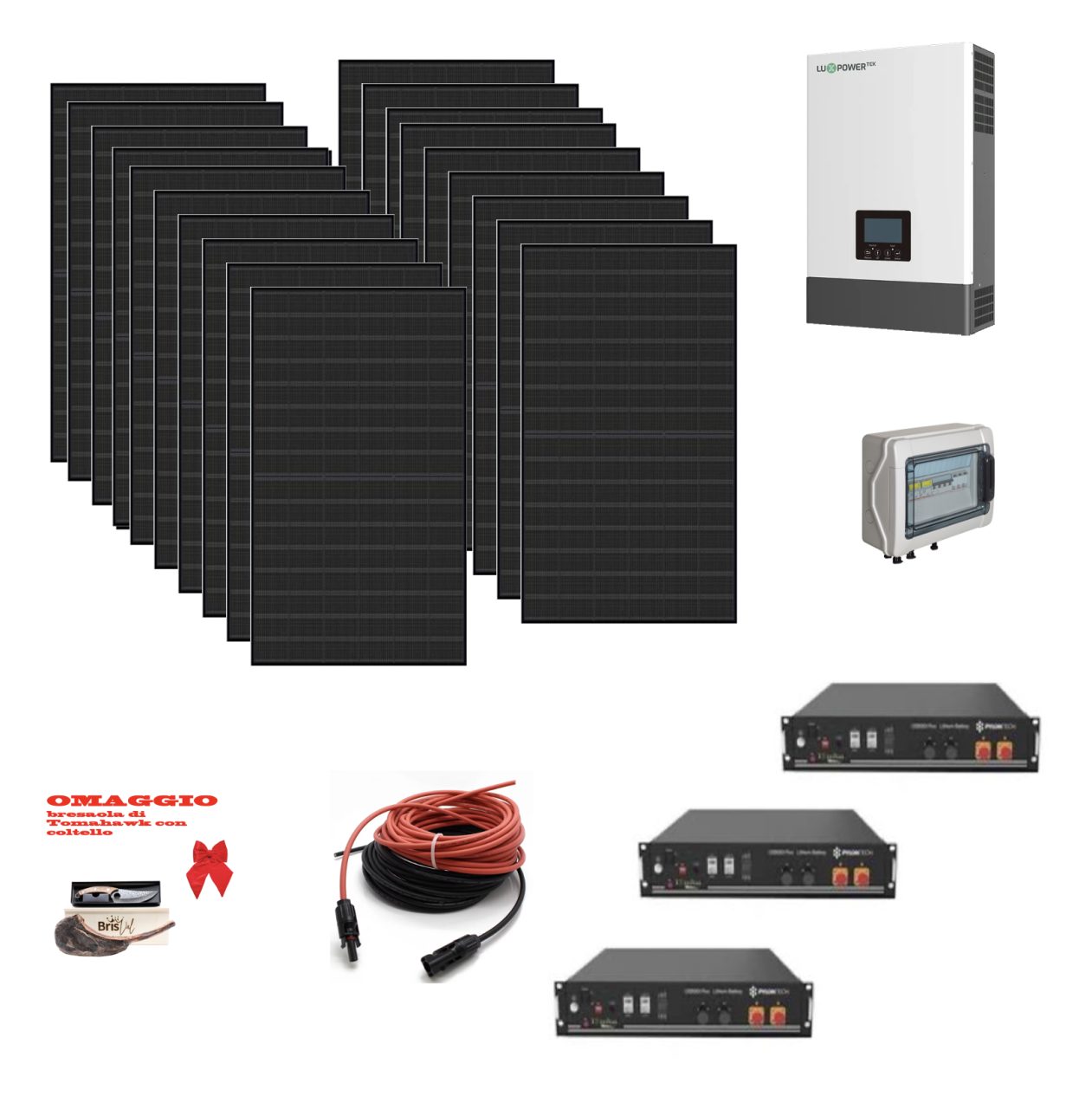 Kit OFF GRID AUTOCONSUMO 9Kwp Pannello Solare HYUNDAI 450Wp Monocristallino bifacciale Inverter 6Kwh con regolatore 2 ingressi MPPT (2 stringhe)