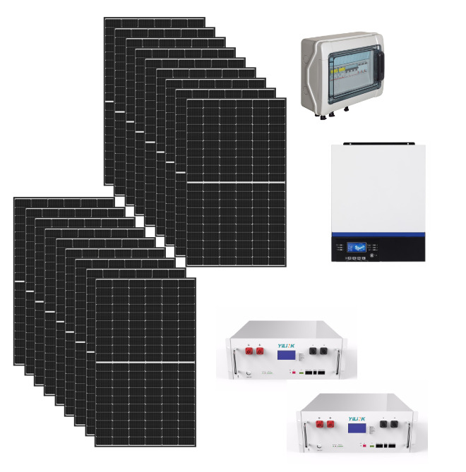 Kit Autoconsumo 8Kwp Pannello Solare TRINA SOLAR 445Wp Monocristallino Inverter 8Kwh con regolatore + Batteria litio 9,6Kwh + Quadro di campo