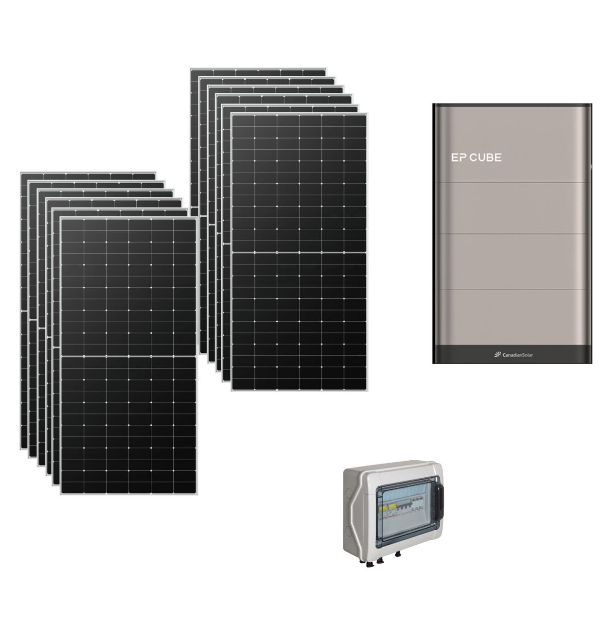 Kit Fotovoltaico On Grid 6,5Kwp Cube Canadian Inverter Ibrido 6Kwh con accumulo 6,6Kwh pannello Solare 460Wp