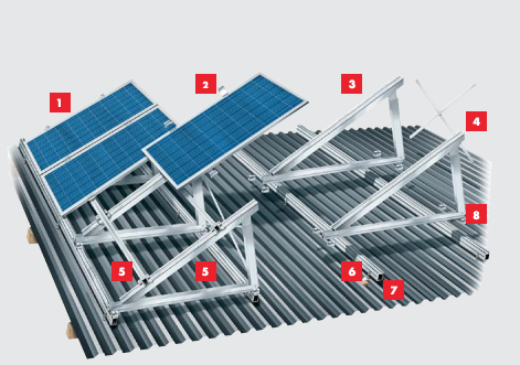 Kit Montaggio Completo Tetto Piano per pannelli solari 9 Moduli WURTH triangoli graffe ganci