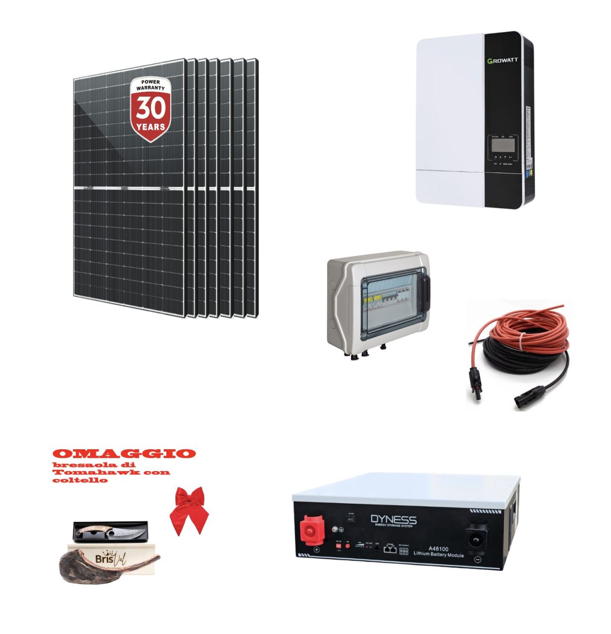Kit Off grid 3Kwp Pannello Solare SUNPRO 440Wp Monocristallino bifacciale Inverter 5Kwh Growatt con regolatore MPPT + Batteria litio Dyness 4,8Kwh
