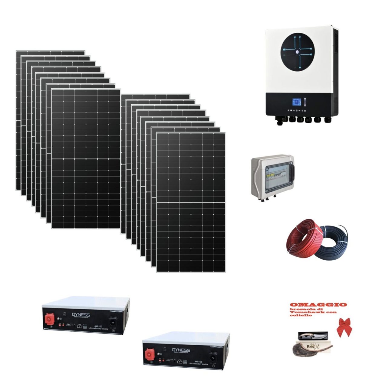 Kit Off grid 8,2Kwp Pannello Solare Munchen 375Wp inverter 11Kwh 2 INGRESSI 2 USCITE con batterie Dyness litio 10KWh + OMAGGIO