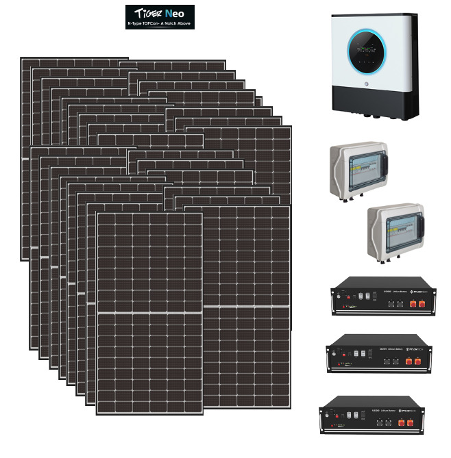 Kit Off grid autoconsumo 10Kwp Pannello Solare Jinko Tiger NEO 585Wp Monocristallino Inverter 10Kwh con regolatore + Batteria litio Pylontech us5000 15KWh