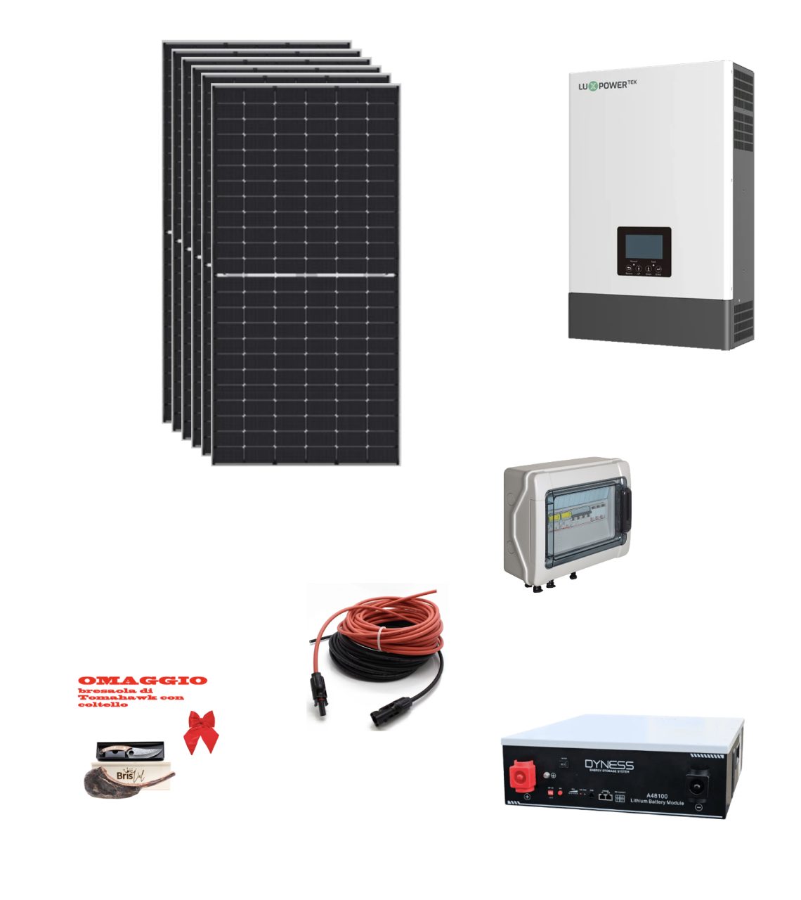 Kit Off grid autoconsumo 3Kwp Pannello Solare JINKO SOLAR 490Wp TIGER NEO Monocristallino Inverter 6Kwh regolatore 2 ingressi + Batteria litio 100Ah 5Kwh Dyness