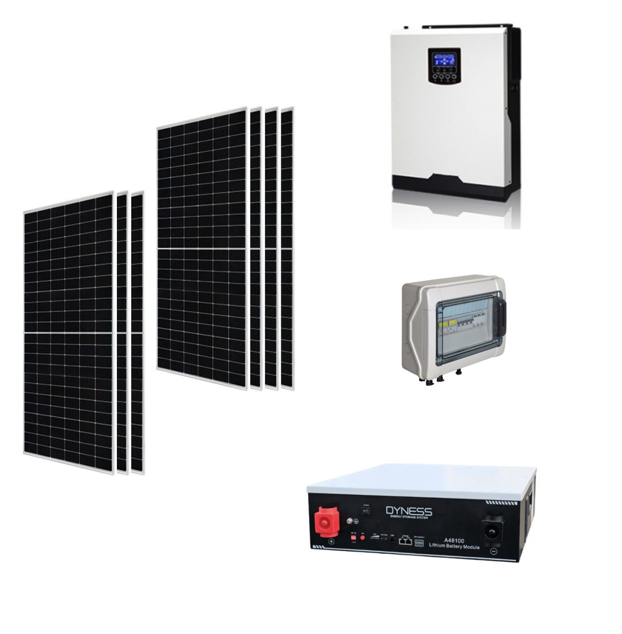 Kit Off grid autoconsumo 3Kwp Pannello Solare Jinko Tiger NEO 440Wp Monocristallino Inverter 6Kwh con regolatore + Batteria litio Dyness 5KWh