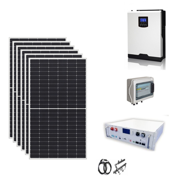 Kit OFF GRID Autoconsumo 3Kwp Pannello Solare LONGI 505Wp Monocristallino Inverter 5Kwh con regolatore + Batteria litio 5Kwh