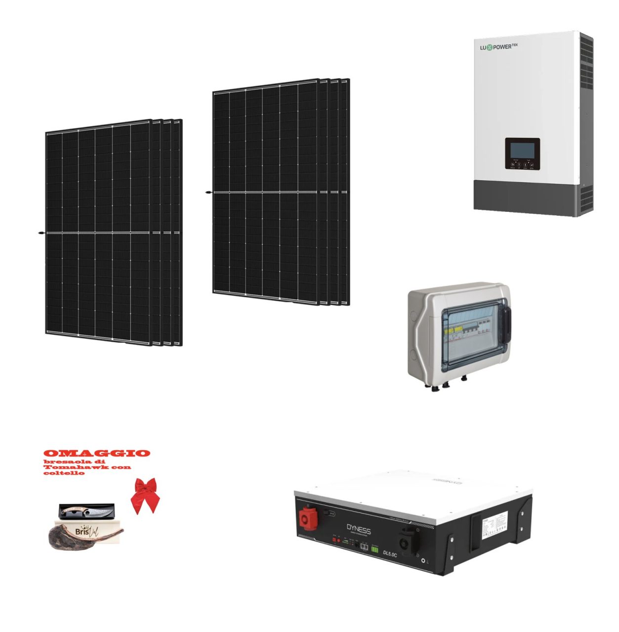 Kit Off grid autoconsumo 3,5Kwp Pannello Solare TRINA SOLAR 445Wp Monocristallino Inverter Luxpower 6Kwh con regolatore + Batteria litio 5Kwh + OMAGGIO