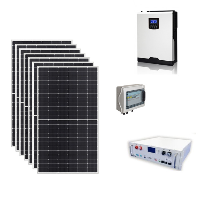KIT 3,4KWp AUTOCONSUMO moduli Trina solar 490Wp Monocristallino + Inverter con regolatore + Accumulo Batteria litio 4,8Kwh