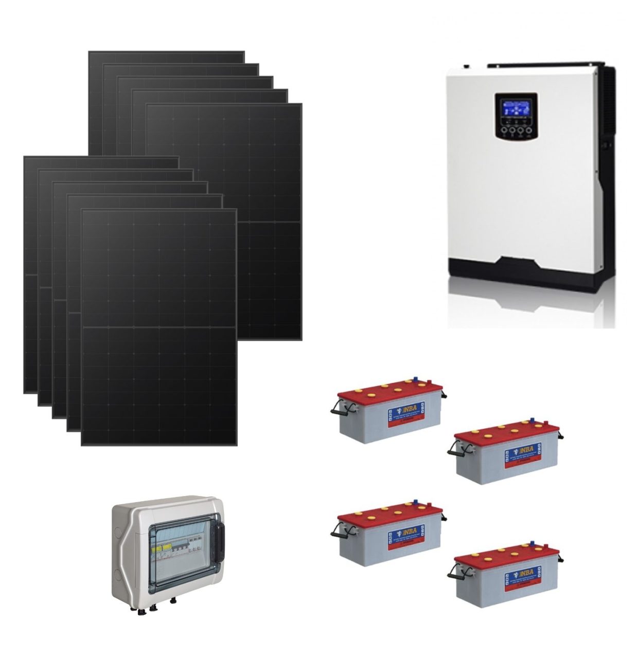 Kit Off grid autoconsumo 4,3Kwp Pannello Solare Longi 425Wp FULL BLACK Monocristallino Inverter 5Kwh con regolatore + Batteria Piombo NBa 200Ah