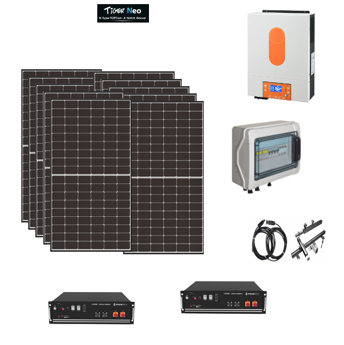 Kit Off grid autoconsumo 4,8Kwp Pannello Solare Jinko Tiger NEO 480Wp Monocristallino Inverter 6Kwh con regolatore + Batteria litio Pylontech 10Kwh + staffe tetto