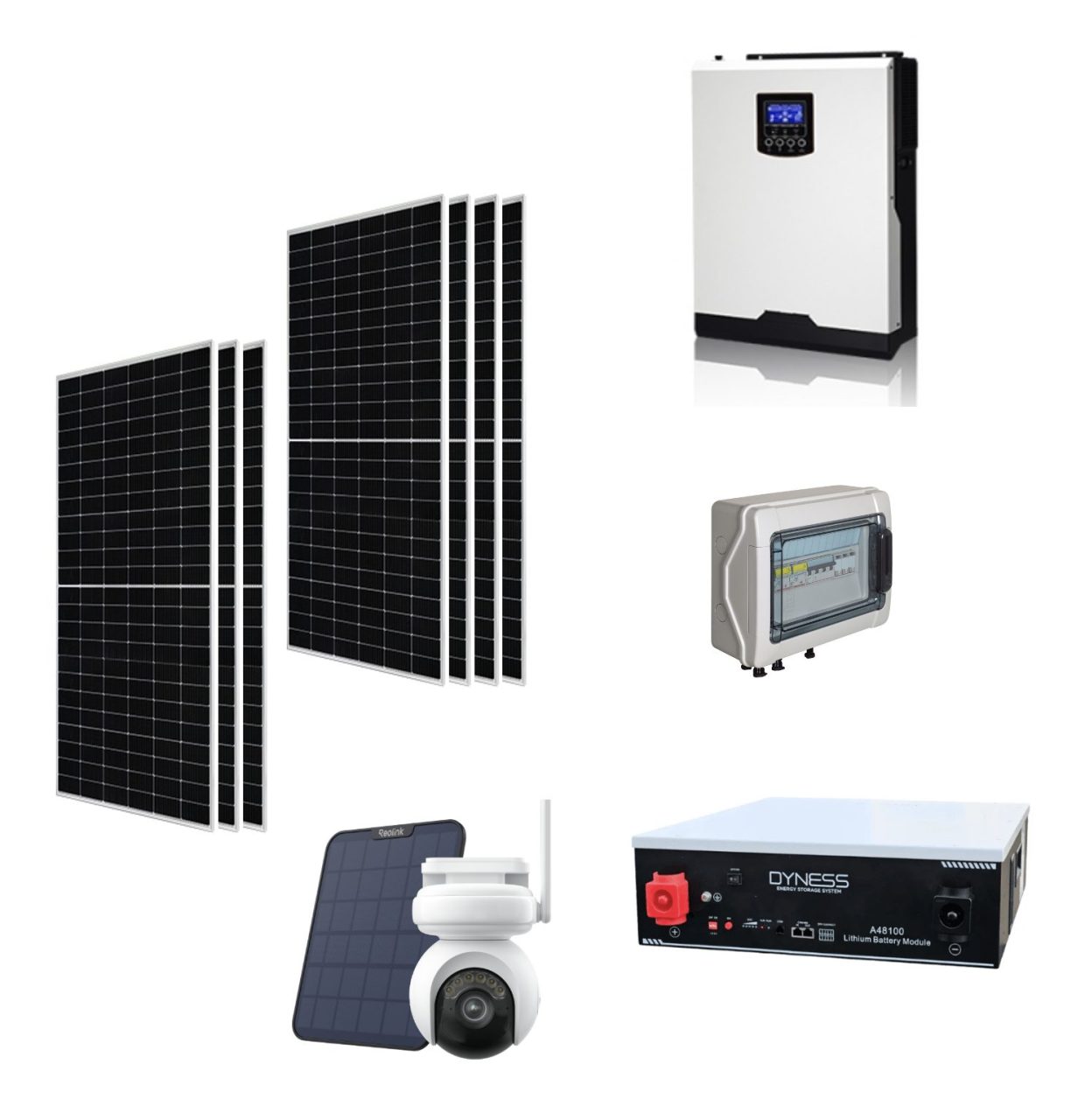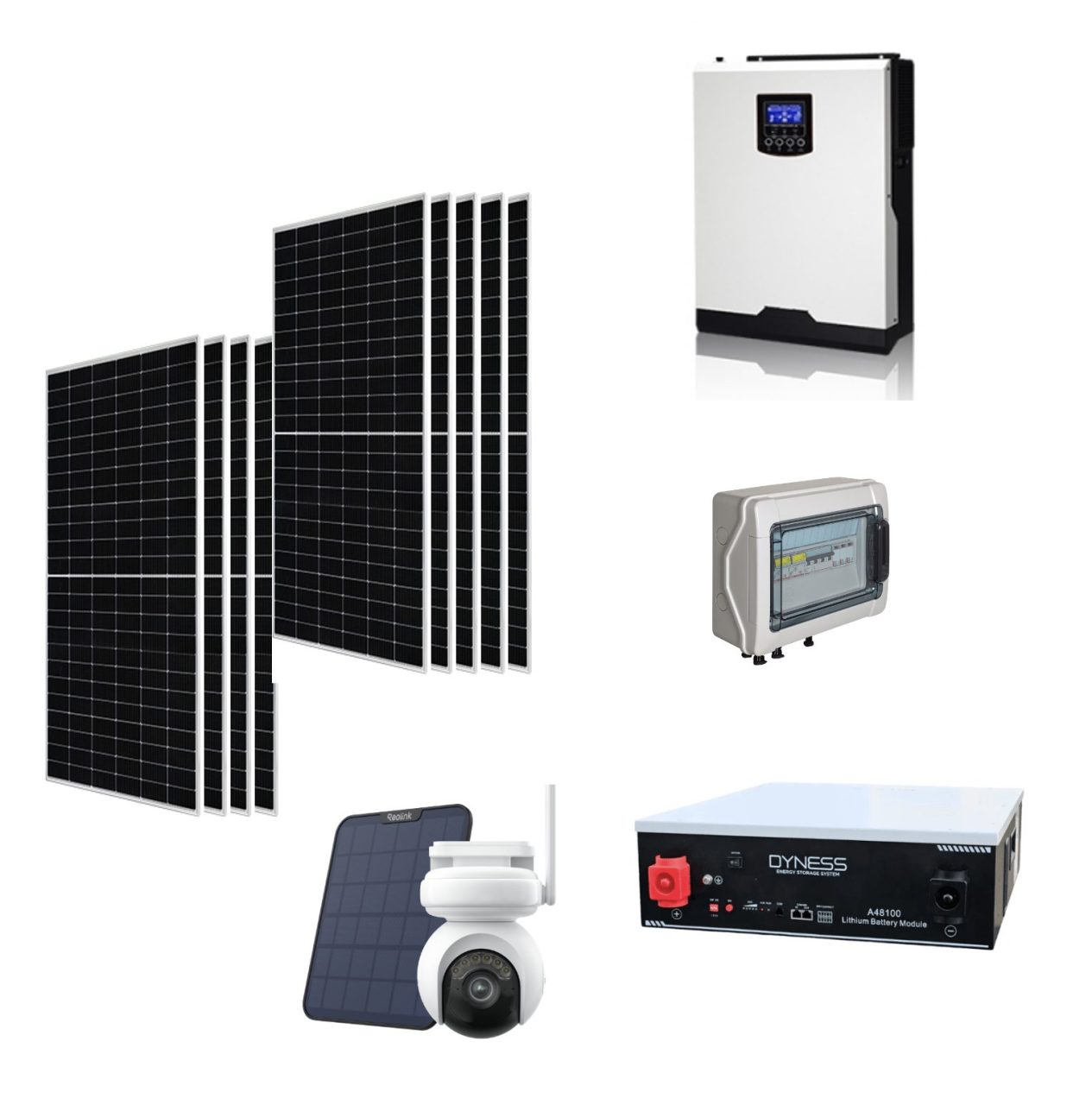 Kit Off grid autoconsumo 4Kwp Pannello Solare Jinko Tiger NEO 440Wp Monocristallino Inverter 5Kwh + Batteria litio Dyness 5KWh + OMAGGIO TELECAMERA Videosorveglianza