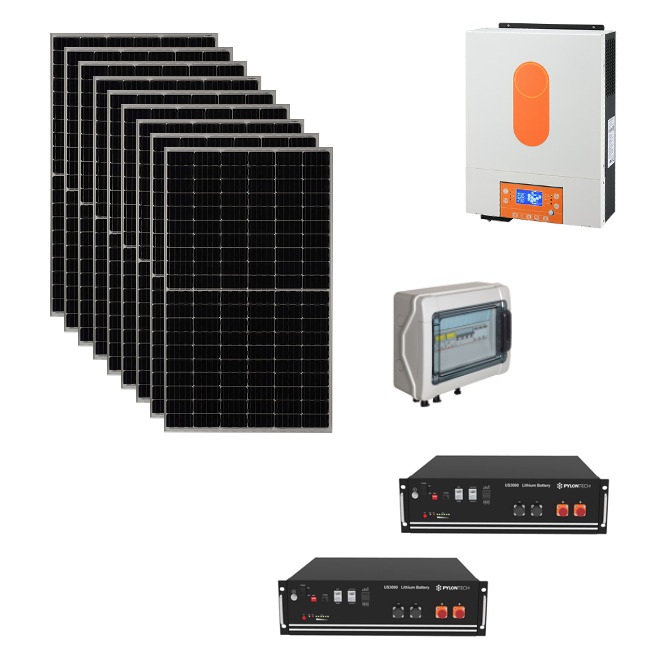 Kit Off grid autoconsumo 4Kwp Pannello Solare Made in Italy 465Wp Monocristallino Inverter 6Kwh con regolatore + Batteria litio Pylontech us5000 10KWh + QUADRO