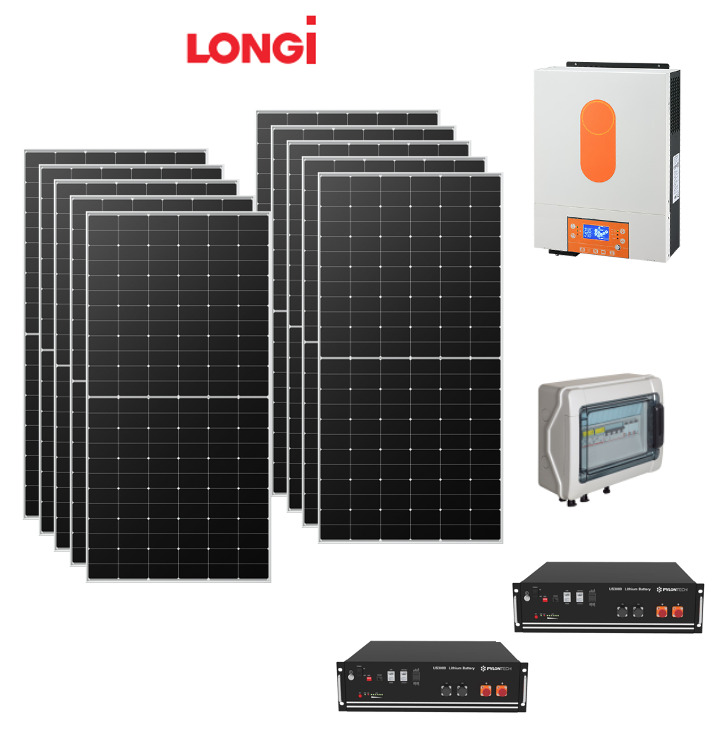 Kit Off grid autoconsumo 5,7Kwp Pannello Solare LONGI 575Wp Monocristallino Inverter 6Kwh regolatore 1 ingresso + Batteria litio 10Kwh