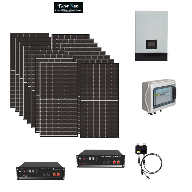 Kit Off grid autoconsumo 5,3Kwp Pannello Solare Jinko Tiger NEO 445Wp Monocristallino Inverter 6Kwh con regolatore 2 ingressi + Batteria litio Pylontech Ottimizzatore TIGO