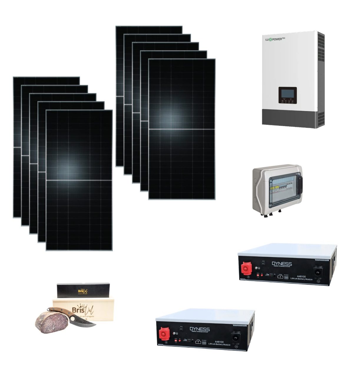 Kit Off grid autoconsumo 6Kwp Pannello Solare Tongwei 600Wp Bifacciale Inverter Luxpower 6Kwh con regolatore 8Kwp + Batteria litio Dyness 10Kwh + omaggio Bresaola