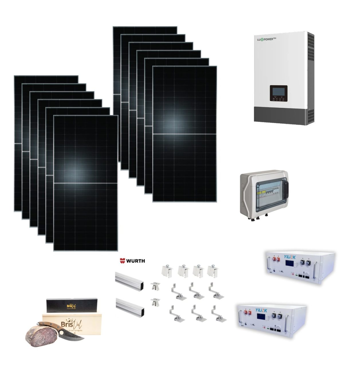 Kit Off grid autoconsumo 7,2Kwp Pannello Solare Tongwei 600Wp Bifacciale Inverter Luxpower 6Kwh con regolatore 8Kwp + Batteria litio Yilink 10Kwh + omaggio Bresaola + staffe