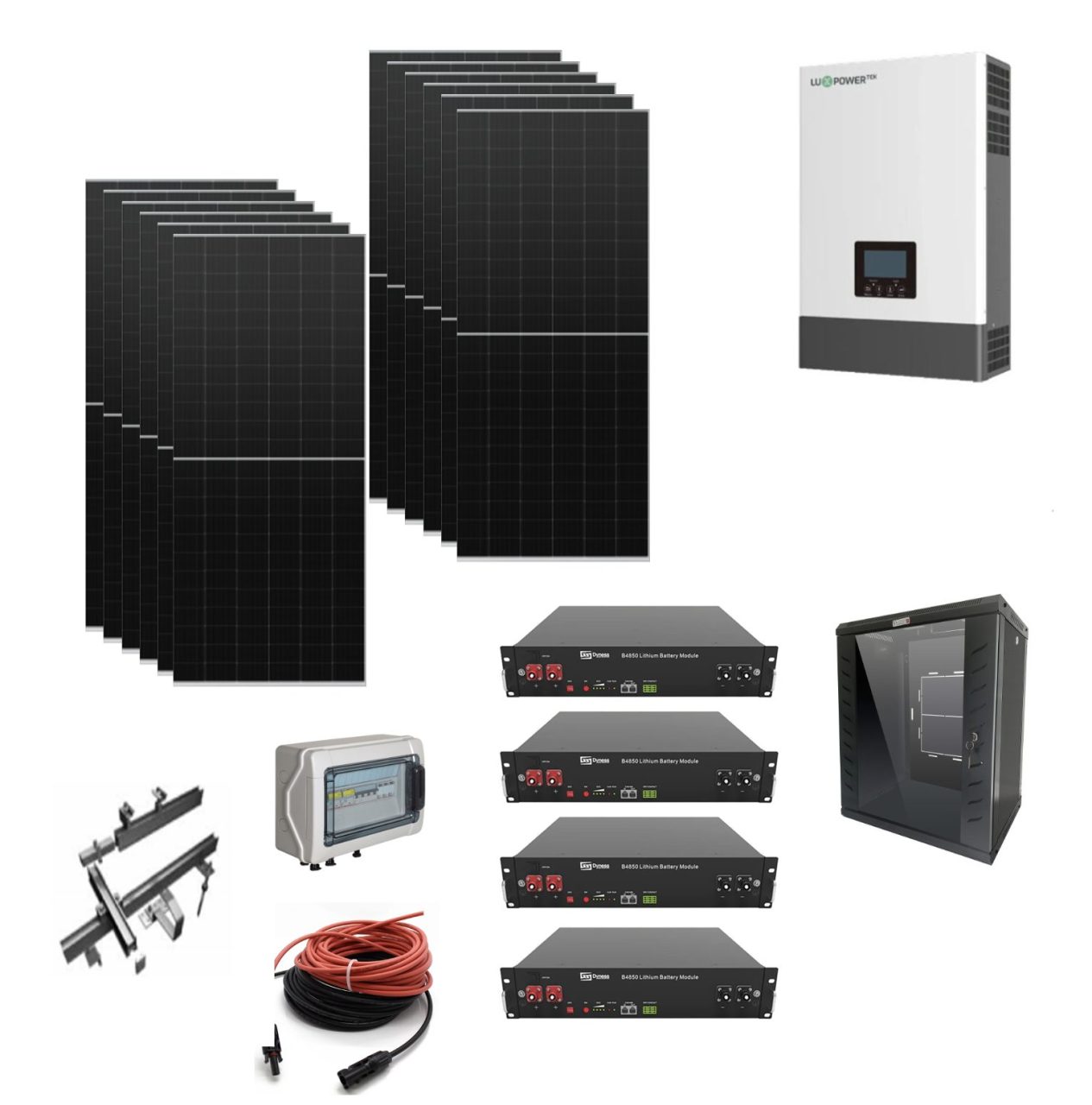 Kit Off grid autoconsumo 7,3Kwp Pannello Solare Longi 610Wp Bifacciale Inverter Luxpower 6Kwh con regolatore 8Kwp + Batteria litio Dyness 10Kwh + Armadio + omaggio Bresaola