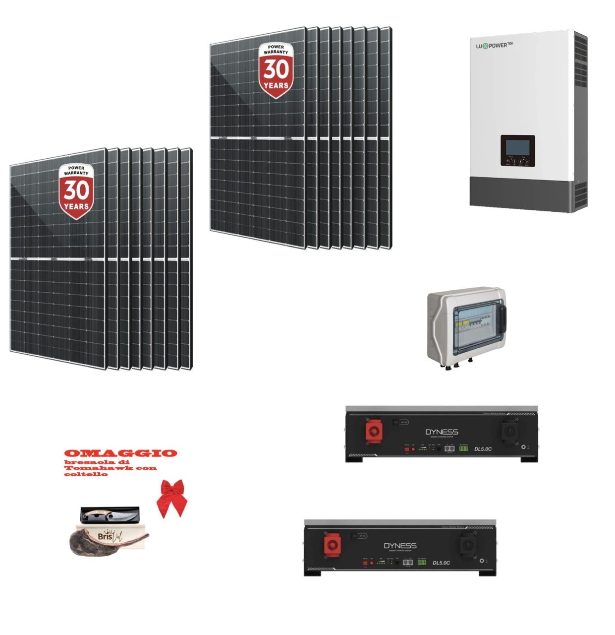 Kit Off grid autoconsumo 7Kwp Pannello Solare Sunpro bifacciae 440Wp Monocristallino Inverter 6Kwh regolatore 2 ingressi + Batterie litio LUXPOWER 200Ah 10Kwh + OMAGGIO