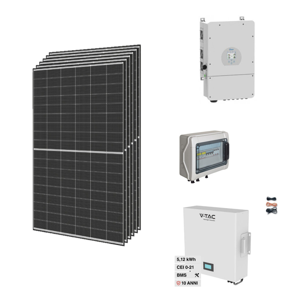 Kit OFF/ON GRID CEI021 Autoconsumo 3Kwp Pannello Solare TRINA SOLAR 445Wp Doppio Vetro Inverter 3,6Kwh DEYE con regolatore + Batteria litio 5,124Kwh 100Ah