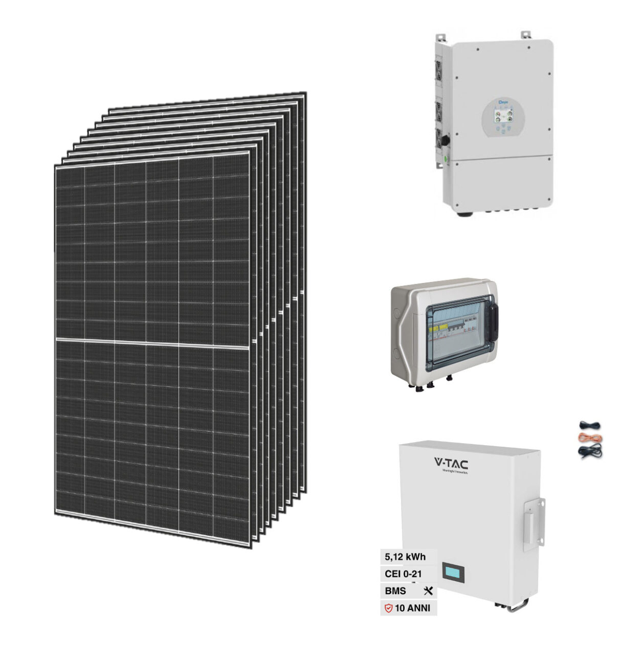 Kit OFF/ON GRID CEI021 Autoconsumo 5,2Kwp Pannello Solare TRINA SOLAR 445Wp Doppio Vetro Inverter 5Kwh DEYE con regolatore + Batteria litio 5,124Kwh 100Ah