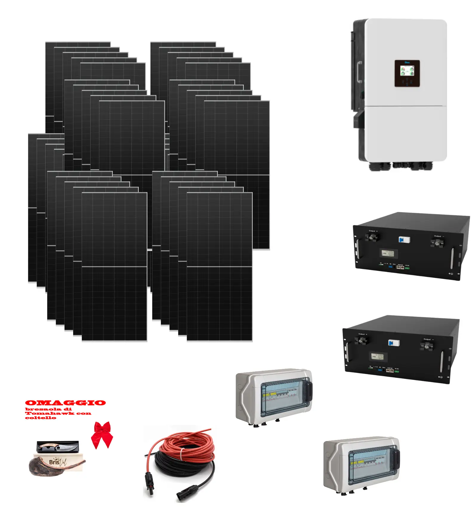 Kit Off/on Grid Trifase 20Kwp Pannello Solare Tongwei 500W Monocristallino BIFACCIALE + BATTERIE LITIO 20Kwh 400Ah + Inverter 20KWh + OMAGGIO