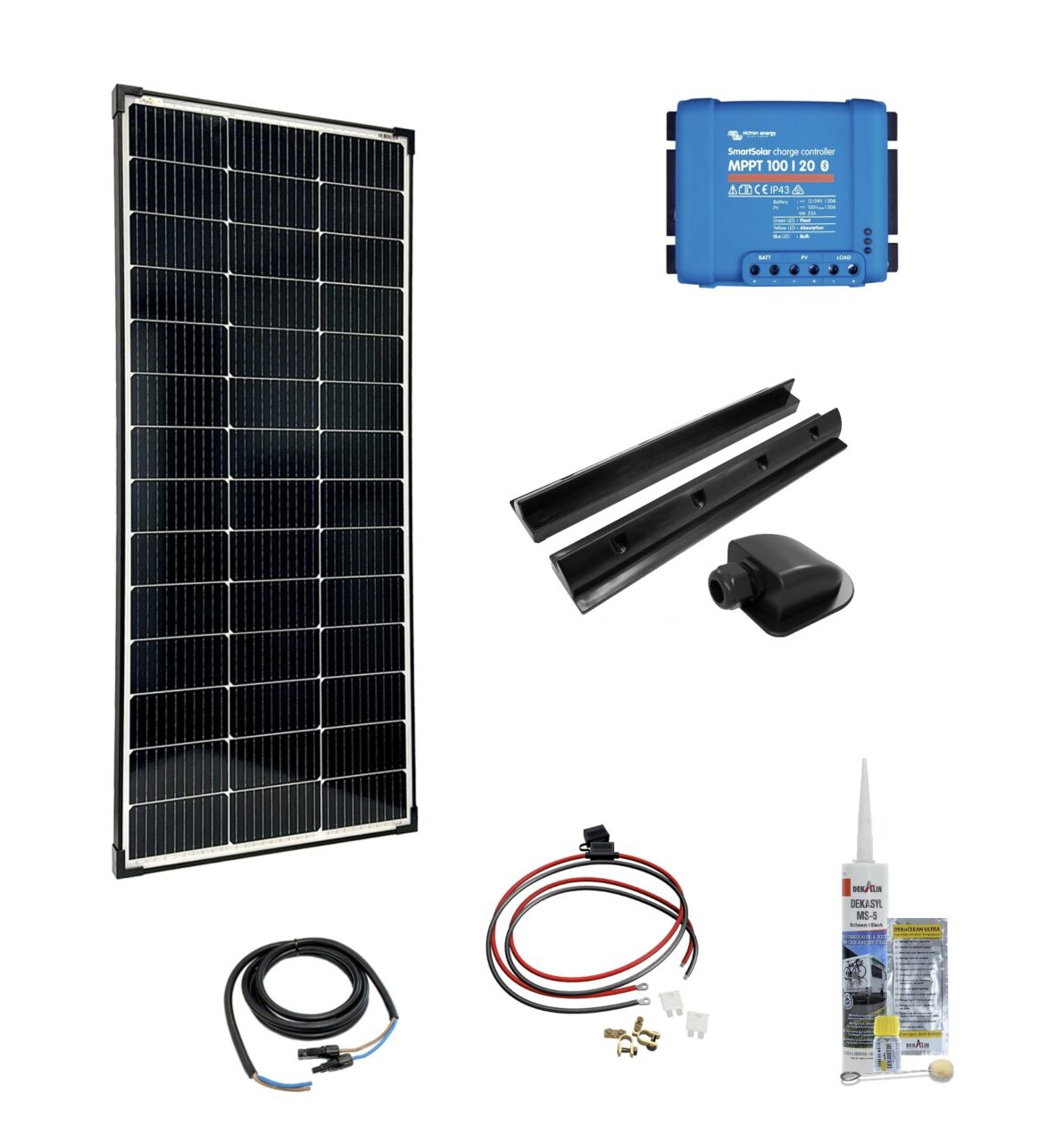 Questo set contiene tutti i componenti necessari per ricaricare le batterie in viaggio. Ciò che rende speciali i nostri sistemi solari per camper è il nostro sistema di montaggio estremamente robusto, che si incolla semplicemente. Il modulo può essere svitato dallo spoiler in qualsiasi momento, qualora fosse necessario accedere all’area sottostante il pannello solare. Questo set è progettato per essere espandibile con un modulo aggiuntivo della stessa potenza.