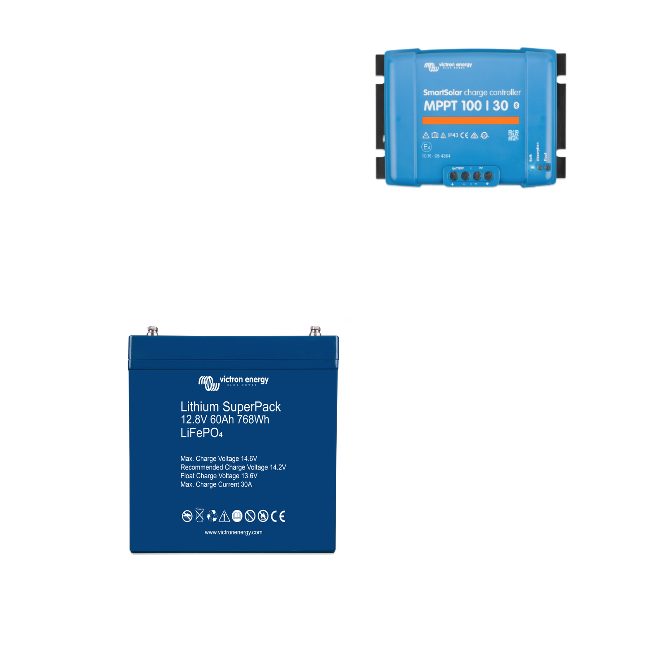 Kit Solare Regolatore Victron Energy Smartsolar 30A MPPT 100/30 12-24V SCC110030210 Batteria LItio 60Ah BAT512060705