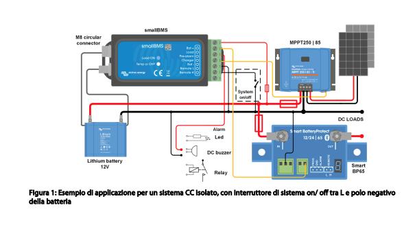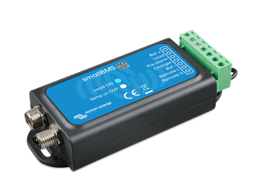 Il smallBMS può sostituire il BMS VE.Bus in varie applicazioni. Ciononostante, non è adatto per l’uso con gli inverter/caricabatterie MultiPlus VE.Bus e Quattro, giacché non ha l’interfaccia VE.Bus. Il smallBMS è pensato per l’uso con le batterie Victron Smart LiFePo4 con connettori circolari M8. Il smallBMS ha tre uscite, similari al BMS VE.Bus.