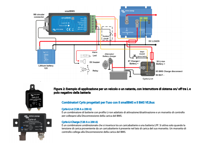 Questo smallBMS può sostituire il BMS VE.Bus in varie applicazioni. Ciononostante, non è adatto per l’uso con il MultiPlus VE.Bus e gli inverter/caricabatterie Quattro, giacché non ha l’interfaccia VE.Bus. Il smallBMS è pensato per l’uso con le batterie Victron Smart LiFePo4 con connettori circolari M8.