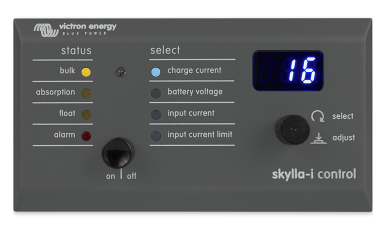 Skylla-i Control consente di modificare la corrente di carica e visualizzare lo stato del sistema.