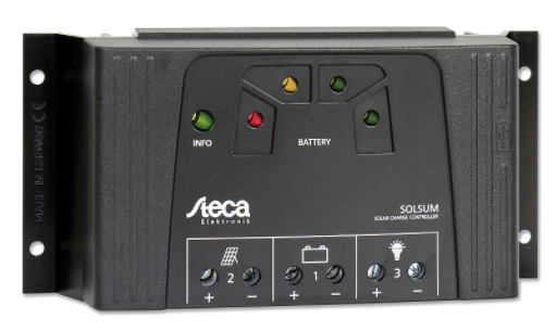 Diversi LED in vari colori forniscono informazioni sullo stato di carica della batteria. Qui vengono impiegati gli ultimi algoritmi di Steca, che garantiscono una manutenzione ottimale della batteria. I regolatori di carica Steca Solsum sono dotati di un fusibile elettronico, rendendo così possibile una protezione ottimale. funzionano secondo il principio seriale e separano il modulo solare dalla batteria per proteggerlo dal sovraccarico.