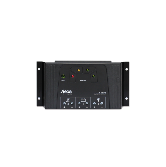 Diversi LED in vari colori forniscono informazioni sullo stato di carica della batteria. Qui vengono impiegati gli ultimi algoritmi di Steca, che garantiscono una manutenzione ottimale della batteria. I regolatori di carica Steca Solsum sono dotati di un fusibile elettronico, rendendo così possibile una protezione ottimale. funzionano secondo il principio seriale e separano il modulo solare dalla batteria per proteggerlo dal sovraccarico.