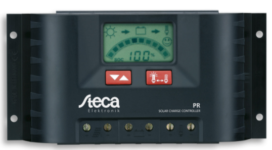 01 Regolatore di Carica Pwm Steca PR 1515 12/24V 15A con display LCD (funzione crepuscolare, display LCD, protezione contro la scarica profonda (LVD)